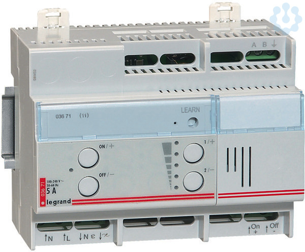 Legrand Universaldimmer, Leistung 1000 W, Lastart: R,L,C, 6-modulig, Fernsteuerbar durch Taster, Direktsteuerung am Dimmer durch Tastbedienung, mit Anschluss für separate Busleitung, Versorgungsspannung: 230 V 50/60 Hz, für Ein-, Aus- und Helligkeitssteuerung , Befestigung auf Hutprofilschiene EN 60715 durch rastende Schnellbefestigung.