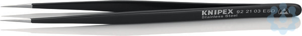 92 21 03 ESD Universalpinzette ESD Elektrisch ableitende Beschichtung: Universalpinzetten in ESD-Ausführung gleichen Potentialunterschiede zwischen ihrem Nutzer und den Bauteilen kontrolliert aus. Sie erfüllen die Anforderungen der Elektronik- und Feinmechanikindustrie und schützen empfindliche Bauteile. - Ausführung: Mattiert - Spitzenbreite (B): 0,3mm - Ausführung Pinzettenspitze: Nadelspitz - Korrisionsbeständig: Ja - Branche Medizin: Ja - Branche Wissenschaft: Ja - ESD: Ja