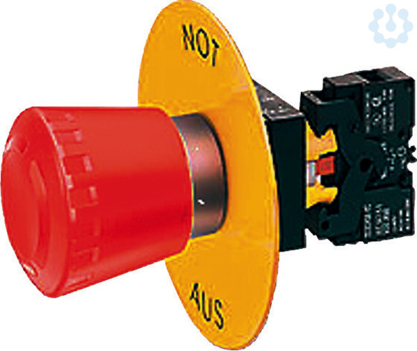 Unterlegschild, gelb, selbstklebend, mit Aufschrift: NOT-AUS Achtung: Die Produktreihe 3SB3 wird abgelöst durch die weiterentwickelte Baureihe SIRIUS ACT 3SU1.