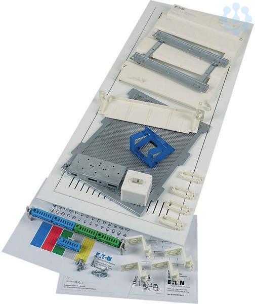 Projekte-Lieferform: Unterputz Ausbausatz Hybrid Kleinverteiler KLV 5-reihig, 24TE, flaches Türrahmendesign, Lieferumfang: Geräteträger, Frontabdeckung, Null- und Schutzleiterklemmen mit KSK Steck-Klemmtechnik, mikroperforierte Montageplatte, Gerätehalter, 1-fach Steckdose, 3D-Putzausgleich mit bis zu 18mm Tiefenausgleich, Kabelhalter, Montageanleitung, Beschriftungsbogen. Normen: Kompletter Verteiler entsprechend IEC/EN 60670-24, IEC/EN 62208 und somit für Verteilungen nach IEC/EN 61439-3 freigegeben. Zur Erlangung der SKII müssen alle Geräte auf der Montageplatte in schutzisolierter Ausführung eingebaut sein.
