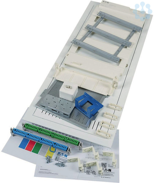 Projekte-Lieferform: Unterputz Ausbausatz Hybrid Kleinverteiler KLV 5-reihig, 36TE, superflaches Türrahmendesign, Lieferumfang: Geräteträger, Frontabdeckung, Null- und Schutzleiterklemmen mit KSK Steck-Klemmtechnik, mikroperforierte Montageplatte, Gerätehalter, 1-fach Steckdose, 3D-Putzausgleich mit bis zu 18mm Tiefenausgleich, Kabelhalter, Montageanleitung, Beschriftungsbogen. Normen: Kompletter Verteiler entsprechend IEC/EN 60670-24, IEC/EN 62208 und somit für Verteilungen nach IEC/EN 61439-3 freigegeben. Zur Erlangung der SKII müssen alle Geräte auf der Montageplatte in schutzisolierter Ausführung eingebaut sein.