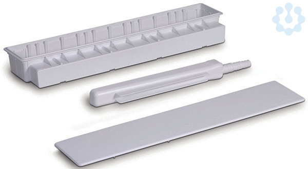 Unterputzkasten inkl. Kondensatwanne mit Anschlussstutzen. Kondensatanschluss und Rohreinführung