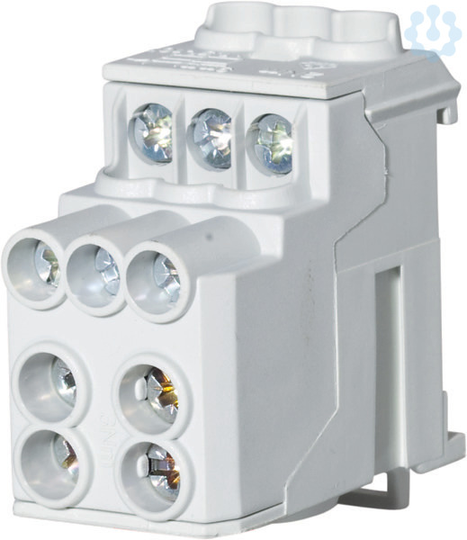 Unterverteilungsblock. Anzahl Pole 1. Einspeiseklemmstellen: 2x 2,5 - 25 mm². Verteilerklemmstellen: 6x 1,5 - 10 mm². passend für: CU-/AL-Leiter. Farbe grau.