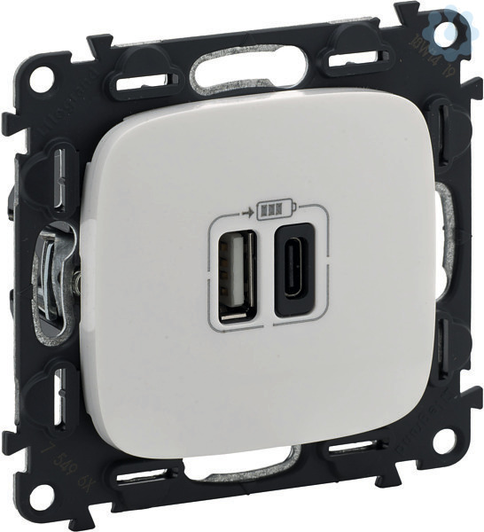 2-fach USB-Ladesteckdosen 1xTyp C und 1xTyp A, USB-C-Stecker, lassen sich beidseitig einstecken, z. B. zum Laden von Smartphones, MP3-/MP4-Player und Tablets. Ausgangsspannung 5 V mit maximalem Ladestrom von Typ C 3000 mA bei einem Gerät oder 1500 mA pro Ausgang bei gleichzeitigem Laden von 2 Geräten; Schraubklemmenanschluss: 230 V~, 15W, Verbrauch im Standbymodus 0,075W, Geliefert inkl. Abdeckung, Ladekabel nicht im Lieferumfang enthalten. Farbe: Ultraweiß