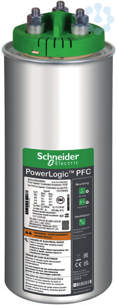 PowerLogic PFC Kondensatoren sind eine zuverlässige und flexible Lösung für die Blindleistungskompensation unter anspruchsvollen Betriebsbedingungen. Diese Kondensatoren werden vor allem bei höheren Spannungsstörungen oder bei Vorliegen geringer nichtlinearer Lasten eingesetzt. Der Nennstrom der Kondensatoren muss erhöht werden, um die Belastung durch den Oberschwingungsstrom zu bewältigen. Dieser Kondensator liefert eine Nennausgangsleistung von 37,6 kVar bei 380V AC, 50 Hz. Die Befestigung wird durch eine ClampTite-Klemme gewährleistet. Diese Komponente entspricht den Normen IEC 60831-1 und IEC 60831-2. Das Gewicht des Produktes im Gehäuse beträgt 5,3 kg.