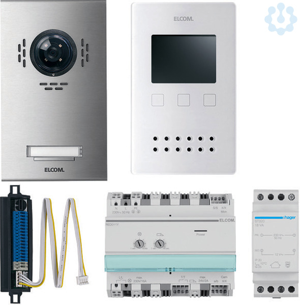 VEA-1EM VideoSet 1 Teilnehmer AP 2D-Video Edelstahl ESTA/BVF-560. Aufputz Video-Set als Elektronikpaket für Sprechanlage/Intercom nach DIN EN 50486 in 2Draht-Video-Technik. Video-Set bestehend aus Innenstation mit Video-Innenstation (Unterputz), Außentürstation mit Kamera/Türelektronik-Kombination (Aufputz), Tastenexpander, Strangversorgung, Video-Netzgerät und Netztransformator. AP-Außentürstation mit 2 mm dicken Frontplatte aus Edelstahl matt gebürstet mit Lochsprechöffnungen, Lautsprecher, Kamera, Tasterleiste, flächenbündiges Namensschild (von vorn wechselbar) mit LED-Beleuchtung und AP-Gehäuse 35 mm Tiefe. Farb-Einbaukamera mechanisch verstellbar (Schwenkbereich 174 Grad) mit automatische Umschaltung von Farbe auf S/W-Betrieb bei Dunkelheit (Infrarotbeleuchtung), integrierter Lautsprecher und Mikrofon-/Lautstärkeregler. Video-Innenstation mit weißer Designblende, LCD-Farbdisplay, frontseitiger Lautsprecher, Kamera, Touchsensor-Tasten und UP-Kasten.