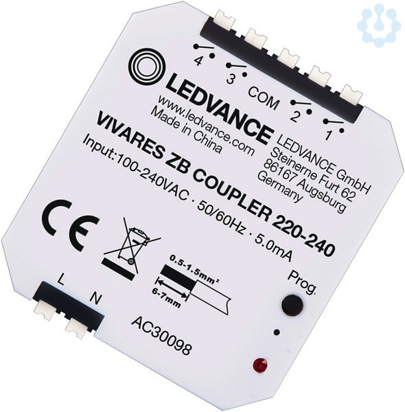 Zigbee 3.0 Tasterkoppler zur Integration von handelsüblichen Schaltern in ein drahtloses Lichtsteuersystem. Produkteigenschaften: Tasterkoppler mit drahtloser Zigbee 3.0 Technologie. Netzspannung- oder Gleichspannungsbetrieb möglich. Produktvorteile: Funktioniert zusammen mit VIVARES ZB Control & Komponenten. Vier komplett programmierbare Eingänge für individuelle Steuerung. Steuerung von Räumen, Gruppen, Geräten und Aufrufen von Szenen. Kleiner Formfaktor ermöglicht Installation in standardisierte Unterputzdosen. Schnelle und einfache Installation ohne zusätzliche Steuerungskabel. Anwendungsgebiete: Büros. Flure. Klassenzimmer. Schulungsräume. Treppenhäuser. Sanitärbereiche.
