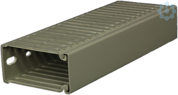 Verdrahtungskanal bestehend aus Unter- und Oberteil. Mit Sollbruchstellen am Stegansatz und Drahtrueckhaltenasen am Stegende. Die Bodenlochung entspricht der EN 50085.