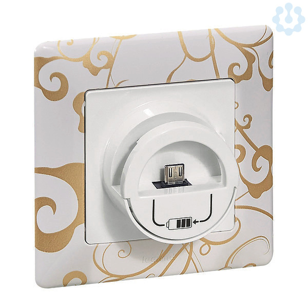 Valena Life Micro-USB Ladeeinheit. Halterung mit Micro-USB-Anschluss zum Laden von Smartphones und Tablets. Ausgangsspannung 5 V mit maximalem Ladestromvon 2400 mA; Konform nach IEC 62684-2011-01. Schraubklemmenanschluss: 230 V~, geliefert inkl. Abdeckung. Farbe: Ultraweiß