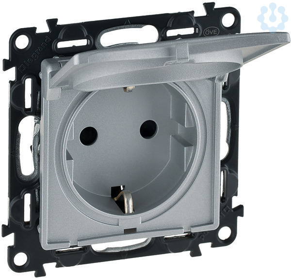 Valena Life Schutzkontakt-Steckdose 16A, Klappdeckel und Abdeckung, mit erhöhtem Berührungsschutz und schraublosen Anschlussklemmen, komplett gekapselter und isolierter Einsatz und Doppelzahn-Spreizkrallen für mehr Halt in der Unterputzdose, Farbe: Aluminium