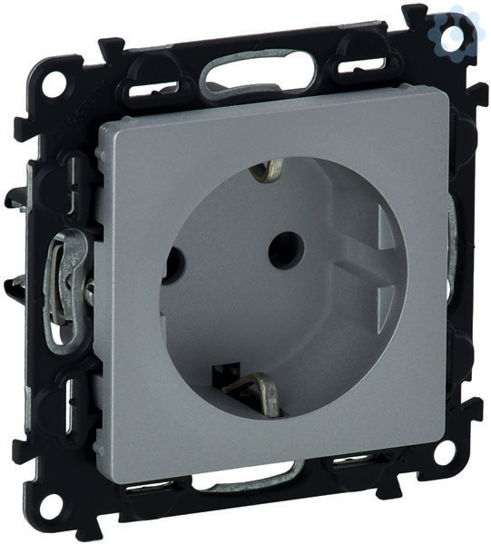 Valena Life Schutzkontakt-Steckdose 16A, inkl. Abdeckung und schraublosen Anschlussklemmen, komplett gekapselter und isolierter Einsatz und Doppelzahn-Spreizkrallen für mehr Halt in der Unterputzdose. Farbe: Aluminium