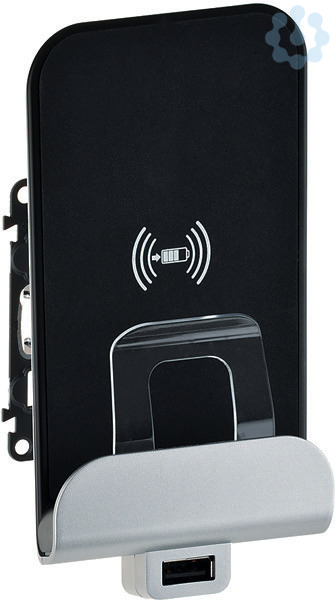 Valena Life, Wireless Charging Aufladestation mit integrierter Smartphone-Halterungund USB-Anschluss zum Laden von Smartphonesund Tablets. Wireless Charging mit maximalem Ladestrom von 1000 mA sowie Typ A USB mit maximalem Ladestrom von 2400 mA mit Ausgangsspannung 5 V. Schraubklemmenanschluss:230 V~, geeignet für Spreizkrallen- und Schraubbefestigung. WPC QI Standard für größtmögliche Kompatibilität,EN 62479 – ICNIRP, geliefert mit Einsatz und Abdeckung, horizontale Mehrfachinstallation möglich. Farbe:Aluminium/ Schwarz