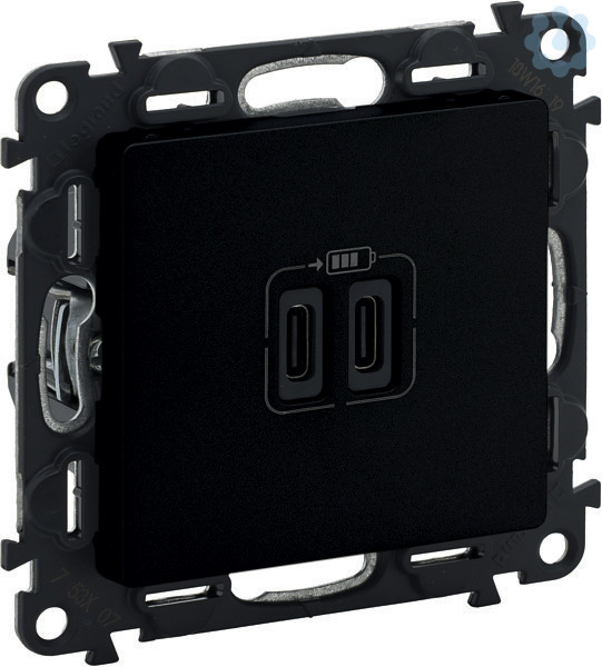 2-fach USB-Ladesteckdosen Typ C, USB-C-Stecker, lassen sich beidseitig einstecken, z. B. zum Laden von Smartphones, MP3-/MP4-Player und Tablets. Ausgangsspannung 5 V mit maximalem Ladestrom von 3000 mA bei einem Gerät oder 1500 mA pro Ausgang bei gleichzeitigem Laden von 2 Geräten; Schraubklemmenanschluss: 230 V~, 15W, Verbrauch im Standbymodus 0,075W, geliefert inkl. Abdeckung, Ladekabel nicht im Lieferumfang enthalten. Farbe: Schwarz