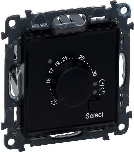 Elektronisches Raumthermostat mit Wechselkontakt zum Heizen und Kühlen. Drei Betriebsarten per Taste wählbar: Komfort, Abgesenkt, Frostschutz. Spannungsversorgung: 230 V~, 50/60 Hz Schaltausgang: 1 potentialfreier Wechselkontakt mit Schraubklemmen, Temperaturbereich: 10 bis 30 °C (+/- 0,5°C) Schaltstrom: 8 A bei cos Phi = 1; 2 A bei cos Phi = 0,6; Hinweis: Zur Verwendung mit Abdeckungen von Valena Allure. Valena Life-Artikel werden inkl.Abdeckung geliefert. Verpackt im Beutel. Farbe: Schwarz