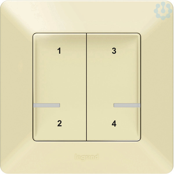 Funk-Szenentaster mit 4 Tasten für "Valena Life with Netatmo" - Wird genutzt um 4 frei definierbare Alltagsszenarien zu erstellen. Dabei werden Beleuchtung, Rollläden und Steckdosen einbezogen. Die Szenarien können über die App „Home + Control“ eingerichtet werden. Extra-flache Ausführung, wird mittels mitgelieferter Klebestreifen flexibel an der Wand befestigt und kann jederzeit versetzt werden. Mittels Schrauben auch auf eine Unterputzdose montierbar. CR 2032 - 3 V-Knopfzellen im Lieferumfang enthalten (Standby-Lebensdauer: 8 Jahre). Auslieferung inkl. Wippe und Abdeckrahmen.Ausführung: Valena Life in der Farbe Mandelweiß