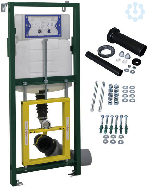 Walraven Vario Basic 10, auch nach der Installation zehn Zentimeter mechanisch höhenverstellbares WC-Vorwandelement, bis 400 Kilogramm belastbar, mit WC-Anschlussgarnitur DN 100, Befestigungsmaterial für Wand und Boden und Bohrschablone für Beplankung.