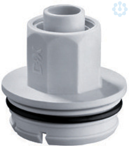Verschraubung mit integrierter Dichtung zum Einrasten in Abzweigdosen und Gewinde fuer Schutzschlauch RGX, Halogenfrei nach EN50267-2-2