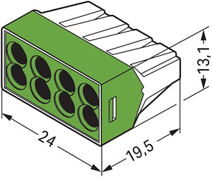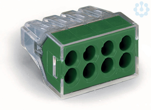 Verbindungsdosenklemme; für ein- und mehrdrähtige Leiter; max. 2,5 mm²; 8 Leiter; Gehäusefarbe transparent; Deckelfarbe grün; Umgebungstemperatur max. 60°C; 2,50 mm²; mehrfarbig