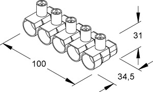 Verbindungsklemme nach DIN EN 60998, Pole einseitig geschlossen, mit 5 abtrennbaren Klemmstellen, mit ausgeprägtem Einführtrichter, halogenfrei. Abmessungen (ca. Maße) H x B x L : 31 x 34,5 x 100 mm Klemmbereich eindrähtig, starr, flexibel : 6,0 - 16,0 mm² Anschlussmöglichkeiten eindrähtig, starr : 4 x 6,0 mm², 3 x 10,0 mm², 2 x 16,0 mm² Anschlussmöglichkeiten flexibel : 3 x 6,0 mm², 2 x 10,0 mm², 2 x 16,0 mm² Werkstoff Isolierteil : PC - Polycarbonat Werkstoff Klemmbolzen : Messing Werkstoff Klemmschrauben : galvanisch verzinkter Stahl Max. Umgebungstemperatur : 85°C Nennspannung : 500 V Farbton : transparent
