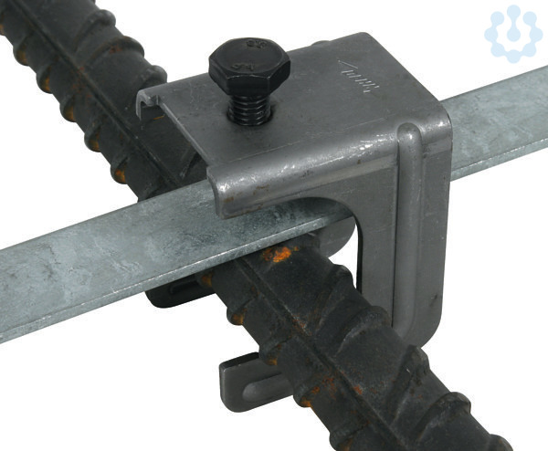 Verbindungsklemme MAXI ohne Druckbügel nach DIN EN 62561-1, zum Verbinden von Rund- und Flachleitern im Betonfundament oder Betonstahlmatten und Bewehrungsstählen mit Rund- und Flachleitern. Ausführung für Kreuzverbindungen.