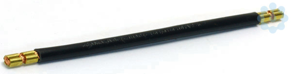 Die schwarze Kabelbrücke ist 260mm lang. Beide Enden sind mit einer Aderendhülse versehen. Diese ist aus H07V-K-Material und ist für einen Querschnitt von 6mm² einsetzbar.