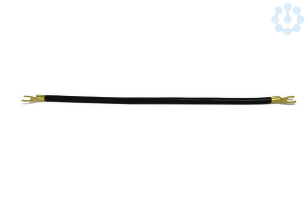 Die schwarze Kabelbrücke ist 260mm lang. Die Enden sind auf beiden Seite mit einem Gabelschuh M6 versehen. Diese ist aus H07V-K-Material und ist für einen Querschnitt von 10mm² einsetzbar.