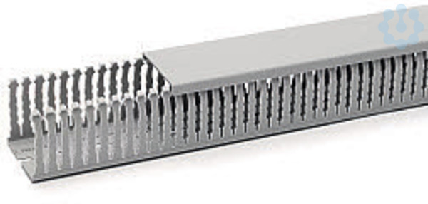 Verdrahtungskanal zur waagerechten und senkrechten Verlegung im Schaltschrank. Direkte Wandmontage mit doppelseitigem Klebeband oder über die integrierte Bodenlochung. Schwer entflammbar und selbstverläschend nach Entzug einer einwirkenden Flamme. Die Stege im Kanalunterteil können werkzeuglos ausgebrochen werden. Unter- und Oberteil im Set. Geprüft nach DIN EN 50085-2-3.