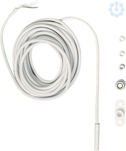 Die Verschlussüberwachung erfolgt mit einem speziellen Magnet und einem Reedkontakt. Die Montage des Magneten erfolgt auf der Schubstange des Fensterflügels, der Reedkontakt wird auf den Rahmen montiert. Das Anschlusskabel LIYY 4 x 0,14 mm2 ist 4 m lang. VdS-Nr. G 190074. VdS Kl. C.