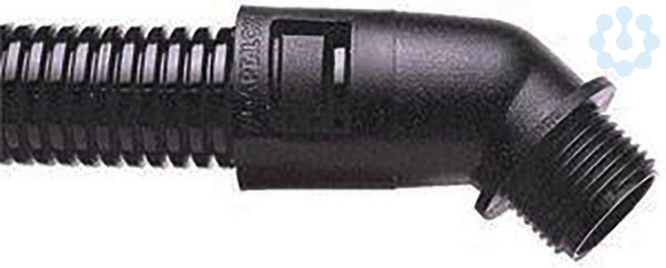 Adaptalok Typ 45 - 45°-Bogen Verschraubung, einteilig mit feststehendem Außengewinde als , Nennmaß: 34, in schwarz, flüssigkeitsdicht (IP66)