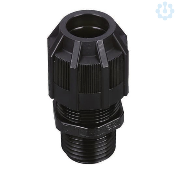 Gerade Kunststoff-Kabelverschraubung fuer Kabeldurchmesser 17.8 - 24.1 mm, Gewindeanschluss NPT 1 Zoll, Material Polyamid 6.6, schwarz, UV-bestaendig, Dichtungsmaterial Neopren, Schutzklasse IP 65