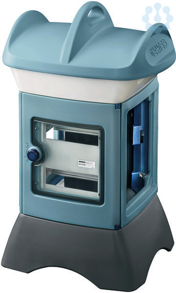 IEC Leergehaeuse 16T tragbar zum individuellen Ausbau als Steckdosenkombination fuer Baustellen,Messen, Festplaetze usw. Im oberen Bereich kann ein Beleuchtungsbausatz montiert werden. Der untere Bereich enthaelt einen Anschlussraum der mit Einspeiseklemmen bestueckt werden kann. Verteilerraum hinter transparenter Tuer zur freien Bestueckung mit Reiheneinbaugeraeten. Der Verteilerraum kann durch ein Sicherheitsschloss nachgeruestet werden. 2 Seiten mit Vorpraegungen und Bohrungen zur Montage von 1 Flanschplatte fuer IEC Steckvorrichtungen usw. Gehaeuseschutzart IP56 (Die Schutzart wird durch die Verwendung der Steckdosen und Leitungseinfuehrungen bestimmt).