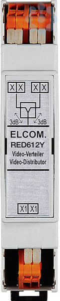 Verteiler 2 fach REG 2Draht lichtgrau. Videoverteiler für Sprechanlage nach DIN EN 50486 in 2Draht-Technik zur Verteilung einer ankommenden auf 2 abgehende Busleitungen. Alternativ zur Einkopplung von 2 Türstationen.