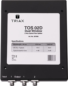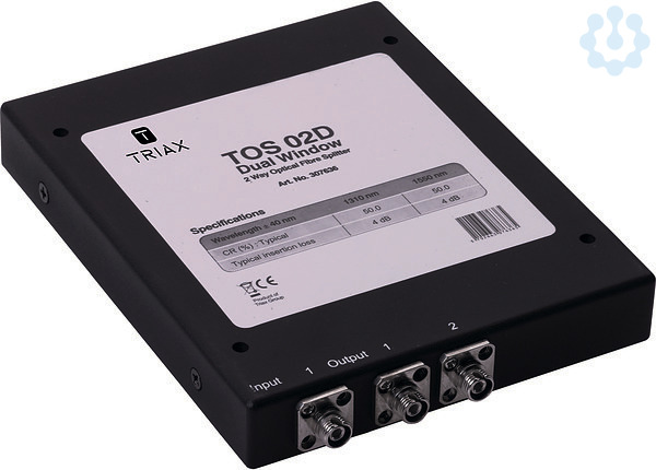 TOS 02D, optischer Verteiler 2-fach mit Kabel. Für Singlemode-Systeme. Hervorragende mechanische Stabilität. Geringe Eingangsdämpfung. Vorkonfektioniert mit 1 m langem Pigtail und FC/PC-Steckern. Wellenlänge 1310 oder 1550 nm.
