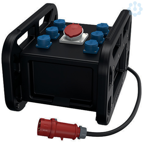 MENNEKES Verteiler EverBOX GRIP, tragbar anschlussfertig verdrahtet Schutzgrad IP 44 Gehaeuse: 1 PE-Gehaeuse 530 x 370 x 320 mm mm (L x B x H) schwarz RAL 9005, stapelbar, mit Tragegriffen schwarz Die umlaufenden Tragegriffe bieten maximalen Griffkomfort und dienen gleichzeitig als zusaetzlichen Schutz fuer Gehaeuse, Steckdosen und Sicherungselemente. Absicherung unter transparenter Betaetigungsklappe Bestueckung/Absicherung: Pos. 01 1x CEE-Anbaudosen 16A5p 6h 400V IP 44 Pos. 02 6x Schuko-Steckdosen 16A2p+E 230V IP 44 6x LS-Schalter 16A 1p C 10KA Pos. 01+02 1x Fi-Schutzschalter 40A 4p IFN=0,03A Zuleitung/Anschlussmoeglichkeit: 2m Zuleitung H07RN-F5G2,5 und CEE-Stecker 16A5p 6h 400V