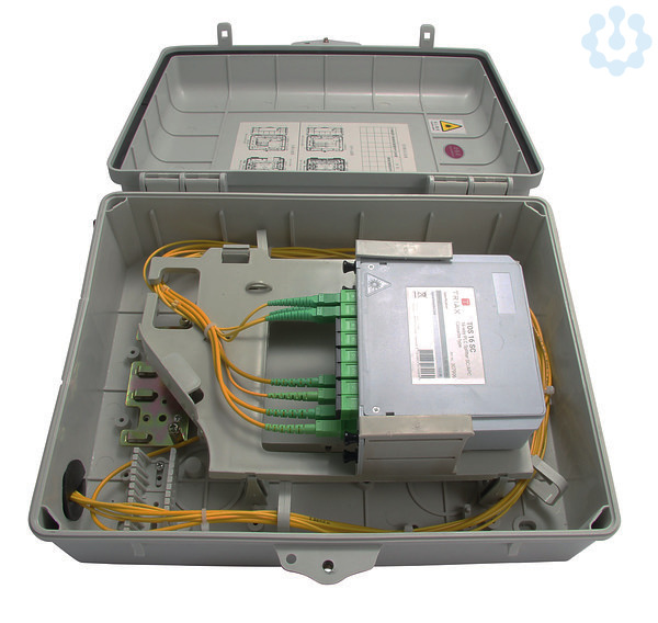 Verteilkasten für TRIAX PLC splitters TOS xxSC sowie Spleiskassetten und Pigtails zur Verbindung von Trunk- und Verteilkabeln. Kann als Glasfaser-Verteilpunkt oder Netzwerkabschluss des LWL-Zugangsnetzes im Innen- sowie Außenbereich eingesetzt werden.