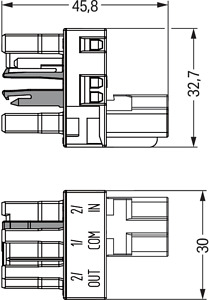 Verteiler für Zustandsabfragen; 2-polig/3-polig; Kod. B; 1 Eingang; 2 Ausgänge; 3-poliger Ausgang für Zustandsabfrage