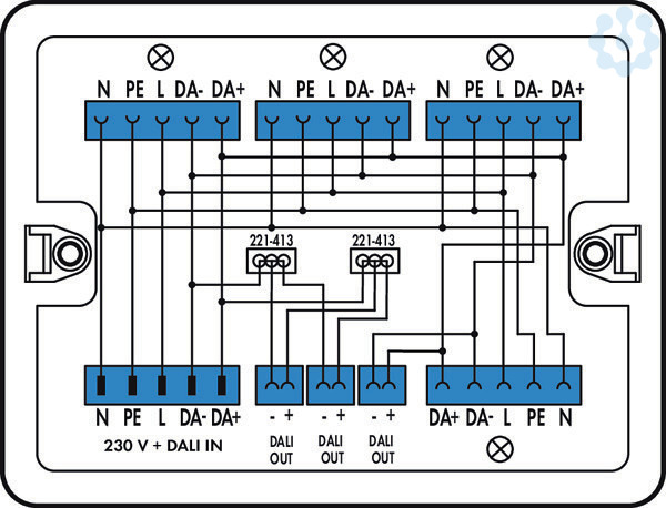 Verteilerbox; 230 V + DALI; 1 Eingang; 7 Ausgänge; Kod. I; MINI, MIDI; weiß