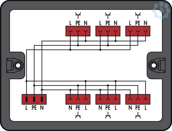 Verteilerbox; Wechselstrom (230 V); 1 Eingang; 6 Ausgänge; Kod. P; MIDI; schwarz