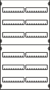 Innenausbausystem, Verteilerfelder, montiert auf EDF-Profil, für DIN Reiheneinbaugeräte, Rasteinheit 6 RE = 900 mm, Feldbreite 2 = 500 mm, 144 Platzeinheiten, Reihenabstand: 125, Ausbau mit Hutprofilschiene 35 x 15 mm mit Lochung für Drahthalter, für Einbaugeräte nach DIN 43880, Abdeckungen aus Kunststoff, 90 Grad Druck-Drehverschluss, RAL 7035, Ausführung der Abdeckung: mit Ausschnitt, einsetzbar ab einer Schranktiefe von 120 mm, Verteilerfelder oder Feldkombinationen müssen die gleichen Rastereinheiten haben wie die Schränke, in die sie eingebaut werden. Bei Stand- und Reihenschaltschränken müssen zwei Felder oder Feldkombinationen übereinander eingebaut werden. Die EDF-Profilschienen sind im Lieferumfang enthalten.