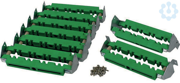 XW - BBT -Schienen Träger Set 65kA für CU 40/10, bestehend aus 8 Stk Schienenträger, davon ein Stk Träger mit versetzten Ober- und Unterteilen, 1 Stk Träger mit Befestigungswinkeln an erster/unterster Position, 6 Stk Trägern mit Standard Befestigungswinkeln, inkl gesam. Schraubmaterial