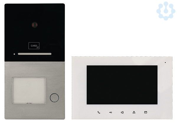 Einfamilien-Set Villa Video 2-Draht Freisprechanlage, mit Zutrittskontrolle per RFID-Kartenleser und/oder mit integrierter Bluetooth-Schnittstelle über eine APP Steuerung für das Smartphone, inkl. Zutrittsverwaltung und Protokollierung, bestehend aus 1x AS AP RL Türstation Aufputz und einer Klingeltaste (Aluminiumgehäuse, man. Lautstärkenregler, Kamera mit 1,0 Megapixel und einem Erfassungsbereich von 110?, Tag-Nachtmodul mit LED-Beleuchtung, 1 Klingeltaster mit Namensschild LED-beleuchtet, Anschlussklemmen für Busleitung, potentialfreier Türöffnerkontakt, Potentiometer Türöffnerzeit, Belastbarkeit potentialfreier Türöffnerkontakt max. 1 A 24 V (DC) / 12 V (AC), LED-Rufanzeige, Anschlussmöglichkeit einer externen Türöffnertaste, Abmessungen 192 x 100 x 22 mm) , 1x Villa M Touch-Screen-7" Farbmonitor (Wandhalterung, Freisprechfunktion, Mikrofon, Lautsprecher, Sprech-, Türöffner- und Intercomtaste, für Parallelbetrieb geeignet, Anschlussmöglichkeit eines Etagentasters, Einstellmöglichkeit der Ruflautstärke, u