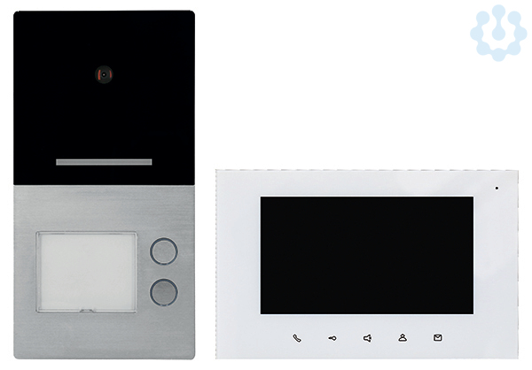 Zweifamilien-Set Villa Video 2-Draht Freisprechanlage, bestehend aus 1x AS AP Türstation Aufputz und zwei Klingeltasten (Aluminiumgehäuse, man. Lautstärkenregler, Kamera mit 1,0 Megapixel und einem Erfassungsbereich von 110?, Tag-Nachtmodul mit LED-Beleuchtung, 2 Klingeltaster mit Namensschild LED-beleuchtet, Anschlussklemmen für Busleitung, potentialfreier Türöffnerkontakt, Potentiometer Türöffnerzeit, Belastbarkeit potentialfreier Türöffnerkontakt max. 1 A 24 V (DC) / 12 V (AC), LED-Rufanzeige, Anschlussmöglichkeit einer externen Türöffnertaste, Abmessungen 192 x 100 x 22 mm) , 2x Villa M Touch-Screen-7" Farbmonitor (Wandhalterung, Freisprechfunktion, Mikrofon, Lautsprecher, Sprech-, Türöffner- und Intercomtaste, für Parallelbetrieb geeignet, Anschlussmöglichkeit eines Etagentasters, Einstellmöglichkeit der Ruflautstärke, unterschiedlicher Klingeltöne sowie Helligkeit und Kontrast, Rufunterscheidung Ruf Intern, Türstation oder Etagentaster, Bildaufnahme mit automatischem Screenshot, SD-Kartenanschluss 2-3