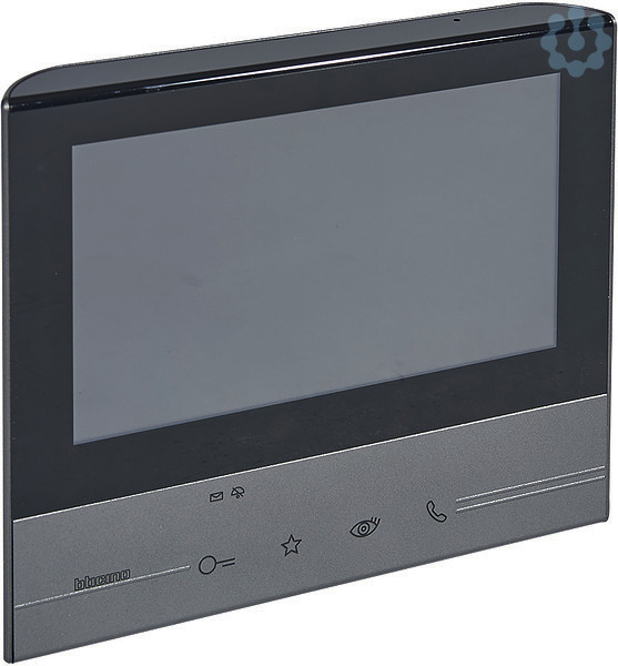 Hörerlose Farbvideo-Hausstation in 2-Drahttechnik mit 7“ (17,8 cm, 16:9) LCD-Touchscreen und integrierter Induktionsschleife für Hörgeräteträger. Verfügt über insgesamt 4 zusätzliche Sensortasten für die Hauptfunktionen (Tür öffnen, Gespräch annehmen, Türstation ein-/umschalten) bzw. eine frei konfigurierbare „Favoriten“-Taste zur Hinterlegung einer oft verwendeten Funktion, wie z. B. Treppenhauslicht, Intern Sprechen, zusätzliche Schaltfunktionen. Fühlbare Führungsleisten für schnelleren Zugriff auf die Sensortasten „Türöffnen“ und „Gespräch annehmen“. Der Zugriff zu den Einstellungen (z. B. Lautstärke, Farbe/Helligkeit des Bildschirms) und weiterführenden Funktionen erfolgt über den Touchscreen. 16 verschieden Ruftöne zur Auswahl. Nachrichten-Funktion: Informationen/Notizen für Mitbewohner können, über die Tastatur am Touchscreen oder mittels Stimmaufnahme, hinterlassen werden. LED-Anzeige für: Ruftonabschaltung, Verfügbarkeit einer Nachricht. Die Konfiguration kann physisch (durch Konfiguratoren) oder mittels Menü direkt am Touchscreen durchgeführt werden. Die Wandmontage erfolgt mittels mitgelieferter Wandhalterung. Auch als Tischgerät mittels separat erhältlichem Zubehör (Art. 344632) verwendbar. Anschluss für BUS, Etagenruf und Zusatzläutewerk. Maße: B × H × T: 193,5 × 162 × 22 mm Farbausführung: Dark (Anthrazit)