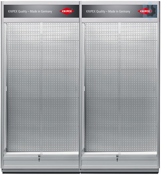 Mit zwei Glasschiebetüren, abschließbar. Mit transparenter Werbeblende. Beleuchtungseinheit mit Kupplungsstecker für Reihenmontage. Für Stromanschluss 230 Volt. Hochwertige Aluminium/Glas-Konstruktion. Hochwertige Aluminium/Glas-Konstruktion. Doppelvitrine zur Montage an Lochplattenwand. Mit Deckenboden und transparenter Werbeblende.
