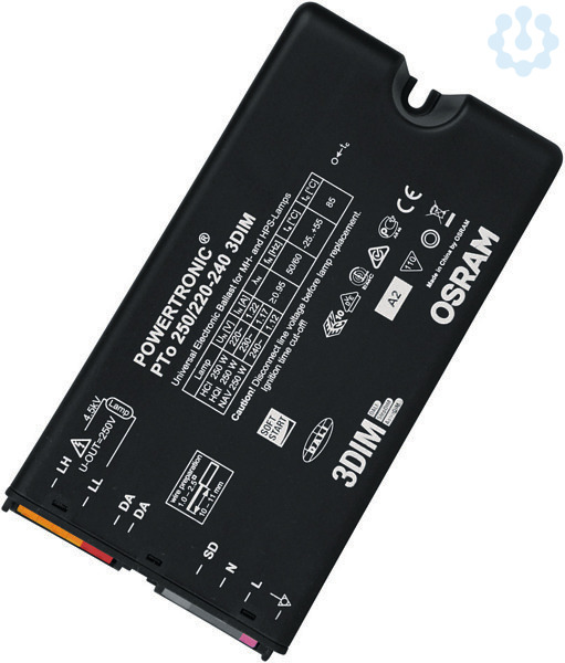 EVG für HID-Lampen, zur Außenbeleuchtung. Produkteigenschaften: 3DIM Funktionalität (StepDIM/AstroDIM/DALI). Energie-Effizienz-Index EEI: A2. Blitzschutz: bis zu 10 kV. Netzspannung: 198…264 V. Netzfrequenz: 50…60 Hz. Netzstromoberwellen nach EN 61000-3-2. Immunität, Störfestigkeit nach EN 61547. Funkentstörung: nach EN 55015 (A1: 2007) bis 300 MHz. Sicherheit: nach EN 61347-2-12. Lichtstromfaktor 1 verglichen mit KVG-Betrieb. Nicht geeignet für Gleichspannungsbetrieb. Produktvorteile: Bis zu 30 % Energieersparnis (gegenüber KVG-Betrieb) durch 3DIM (außer PTo 35). Hoher Überspannungsschutz: bis zu 3 kV (L-N) / 4 kV (L/N-PE). Automatische Sicherheitsabschaltung bei Lampendefekt und am Lampenlebensende (EoL). Ausgezeichnetes thermisches Verhalten ermöglicht sehr hohe Grenztemperaturen tc und ta. Anwendungsgebiete: Geeignet für Leuchten der Schutzklasse I und II. Geeignet für Außenanwendungen in Leuchten mit IP > 54.