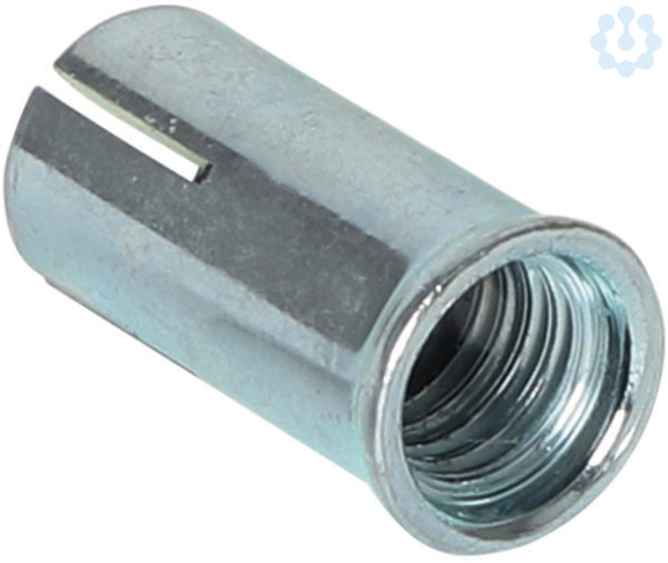 Mit einem Kragen zum oberflächenbündigen Setzen befestigt der WDI1R Einschlaganker kurz gelippt (ev) mit Innengewinde mittlere Lasten in gerissenem und ungerissenem Beton, durch reduzierte Setztiefe von 25 mm auch zugelassen in Spannbeton-Hohldeckenplatten
