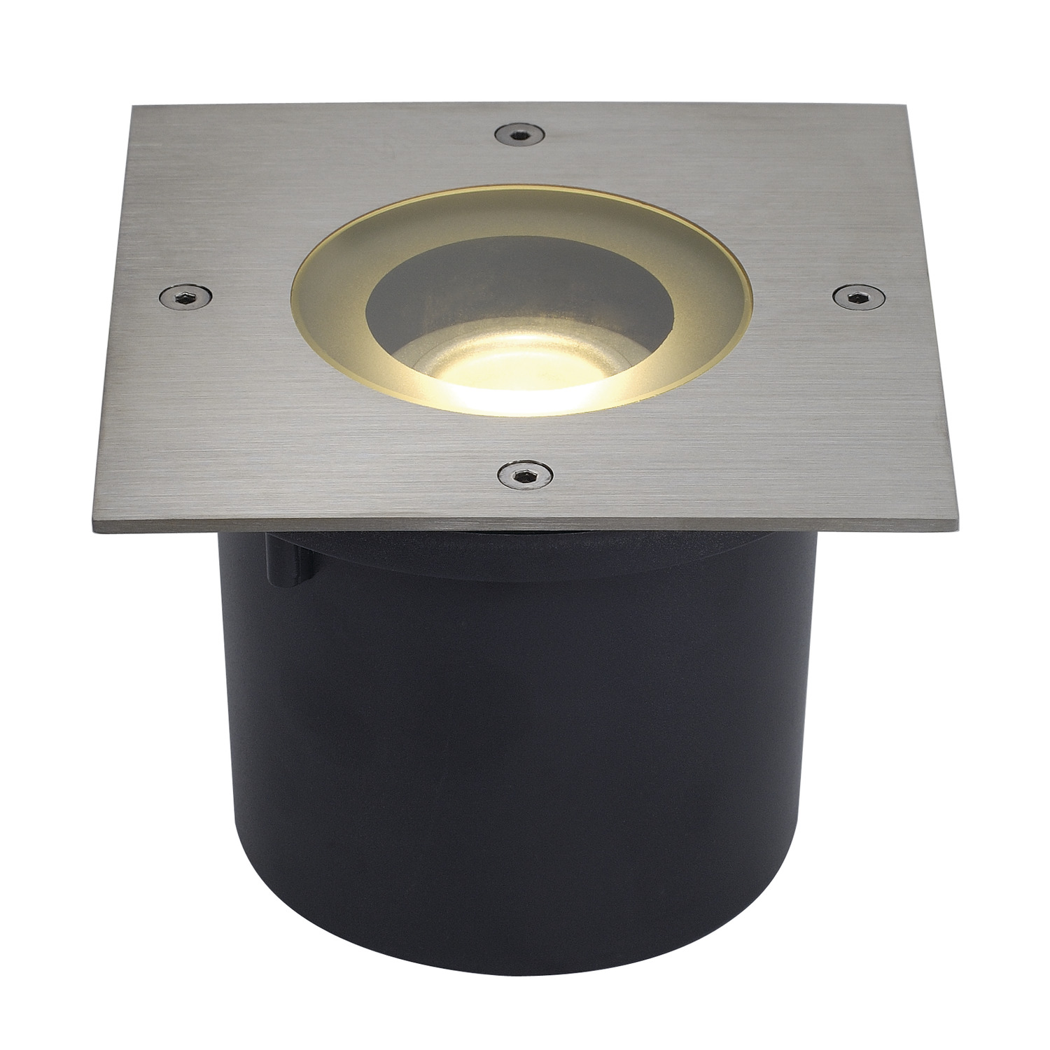 Die begehbare Bodeneinbauleuchte mit quadratischer Edelstahlblende und klarer Glasabdeckung ist mit dem Philips LED Disk 300lm Modulen ausgestattet. Durch die Schutzart IP67 ist die mit zwei Blendenformen verfügbare Leuchte für den Außenbereich geeignet. Der elektrische Anschluss erfolgt direkt an 230V Netzspannung. Zur einfachen Montage befindet sich ein Einbautopf im Lieferumfang. Diese Leuchte enthält eingebaute LED-Lampen.
