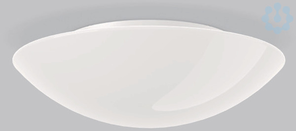 Dekorative runde Anbauleuchte. Armatur Kunststoff. Mundgeblasenes Drei-Schicht-Opalglas (Triplex-Glas) seidenmatt. Glasbefestigung mit Federsystem. Das Triplex-Glas sorgt für besonders homogenes, weiches und blendfreies Licht. Geeignet für Deckenanbau, Wandanbau.
