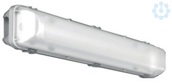 Feuchtraumanbauleuchte. Armatur Kunststoff (Polycarbonat). Innenliegende Halterung Stahlblech weiß lackiert. Dichtung zwischen Gehäuse und Diffusor aus alterungsbeständigem PU (Polyurethan)-Schaum. Diffusor Kunststoff (PMMA). Diffusor spritzgegossen, innenprismatisch und UV-beständig. Befestigung des Diffusors durch Edelstahlclips. Lichtverteilung symmetrisch. Homogene Ausleuchtung. Montagefreundlich durch Schnellbefestigungsklammern aus Edelstahl. Leuchten mit begrenzter Oberflächentemperatur nach DIN EN 60598-2-24 zur Verwendung in einer Umgebung, in der eine Ablagerung von leitfähigem Staub auf der Leuchte erwartet werden kann.