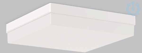 Flache quadratische Anbauleuchte. Armatur Kunststoff. Diffusor Kunststoff (Polypropylen) opal seidenmatt. Befestigung des Diffusors mit Federsystem. IP 43 Deckenmontage, IP 44 Wandmontage.